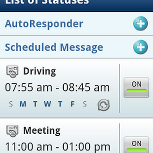 ✔ Silent mode schedule – set ringer mode to silent during status duration or set vibrate mode to silent or torn off both (ringer and vibration)