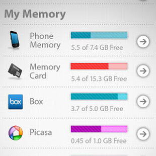 SanDisk Memory Zone puts you in complete control. Manage and backup both your local and cloud memory with one free app. Move files back and forth from your memory card to select cloud services, or from the cloud directly to your phone. Cloud services supported: Box, Dropbox, Google Docs, Picasa, SugarSync, SkyDrive and Facebook.
